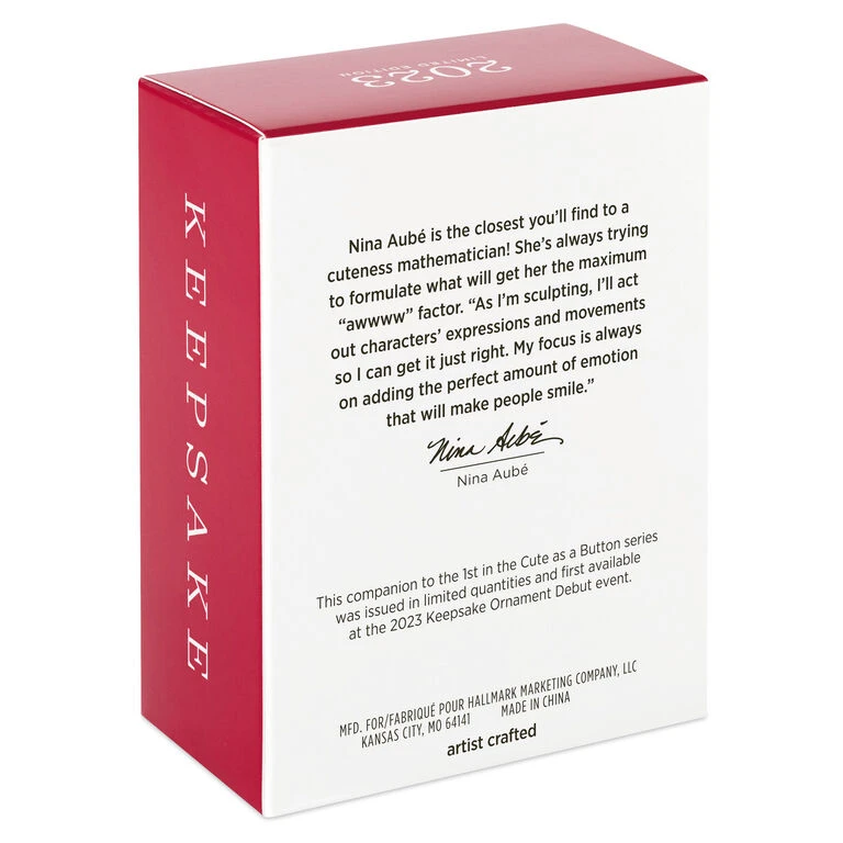 - Key Features: Limited quantity, first available at the 2023 Keepsake Ornament Debut event. Coordinating 2023 Cute as a Button ornament sold separately. Not eligible for Keepsake Wish List.
