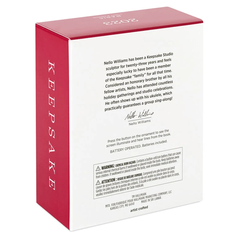 - Key Features: Press the button on the Magic Light and Sound ornament to see the screen illuminate and hear lines from the book.