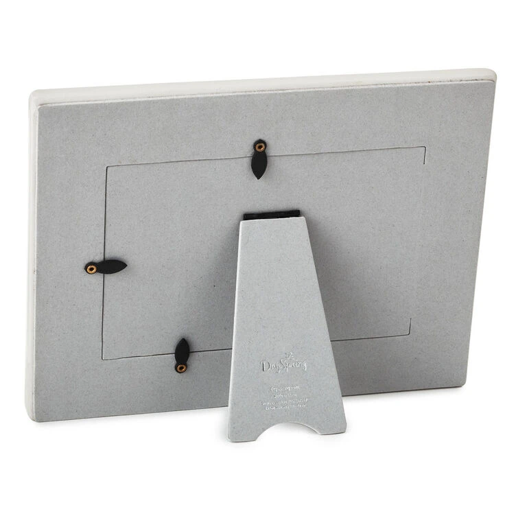 - Ceramic memorial picture frame with printed message holds a horizontal 4″ x 6″ photo.