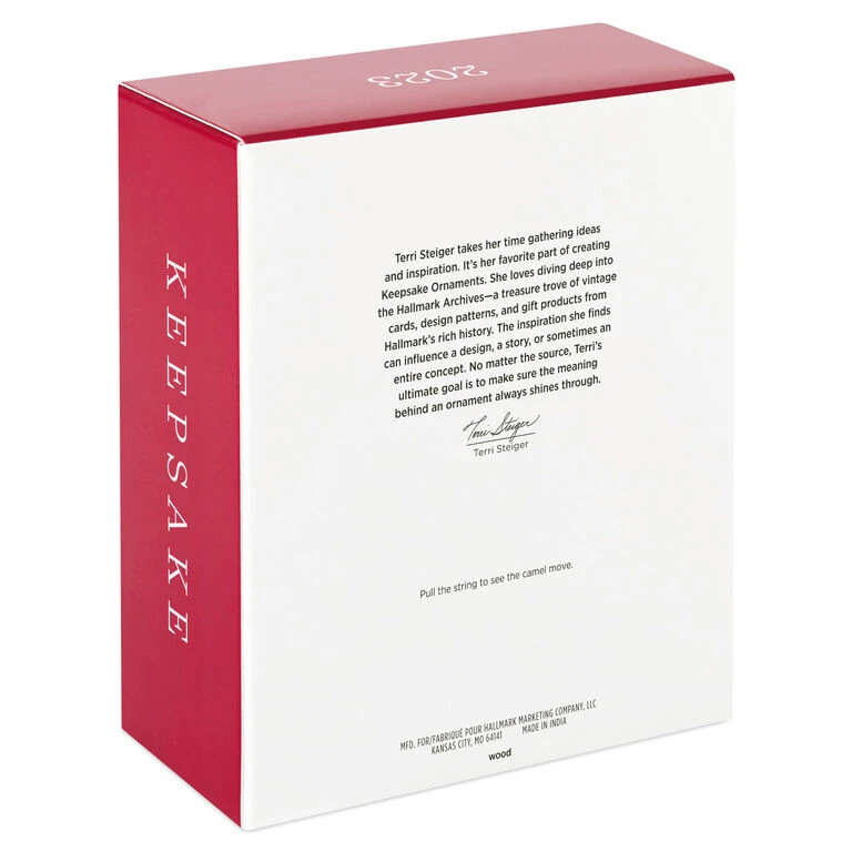Inspired by classic jumping jack toys, this wooden pull-string Christmas tree ornament combines timeless charm and modern trends for your holiday decor. Ornate patterns add festive detail to the delightful design that features Santa riding atop a camel. Give the string a gentle tug to see the mighty animal move its legs.