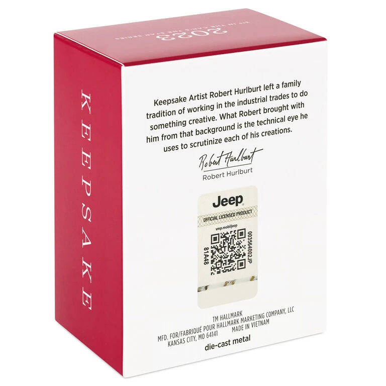 Hallmark The Car’s The Star Jurassic Park 1992 Jeep Wrangler Metal Ornament